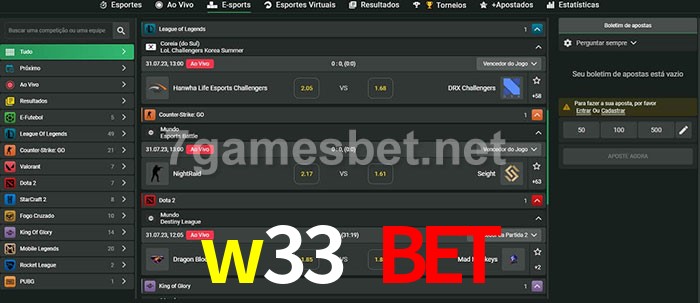 O w33 bet oferece uma grande seleção de opções de apostas em e-sports com probabilidades competitivas